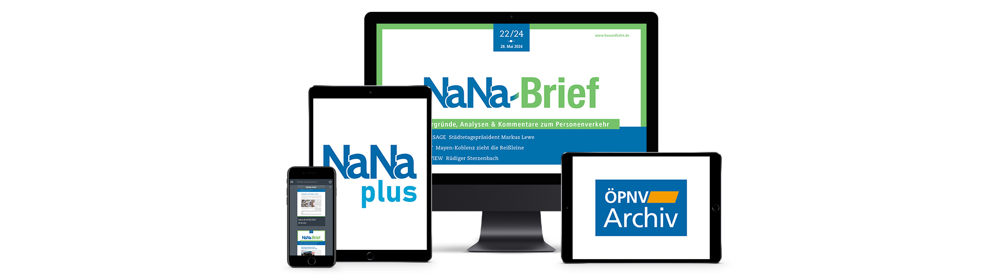Der NaNa-Brief ist das exklusive Expertenmedium für alle, die verstehen und einordnen wollen. Der NaNa-Brief bietet Hintergründe, Analysen und Kommentare zum Personenverkehr. Das aktuelle Marktgeschehen und die politischen, rechtlichen und unternehmerischen Entwicklungen stehen im Vordergrund – über den Nahverkehr hinaus auch im Fernverkehr und in internationalen Märkten.