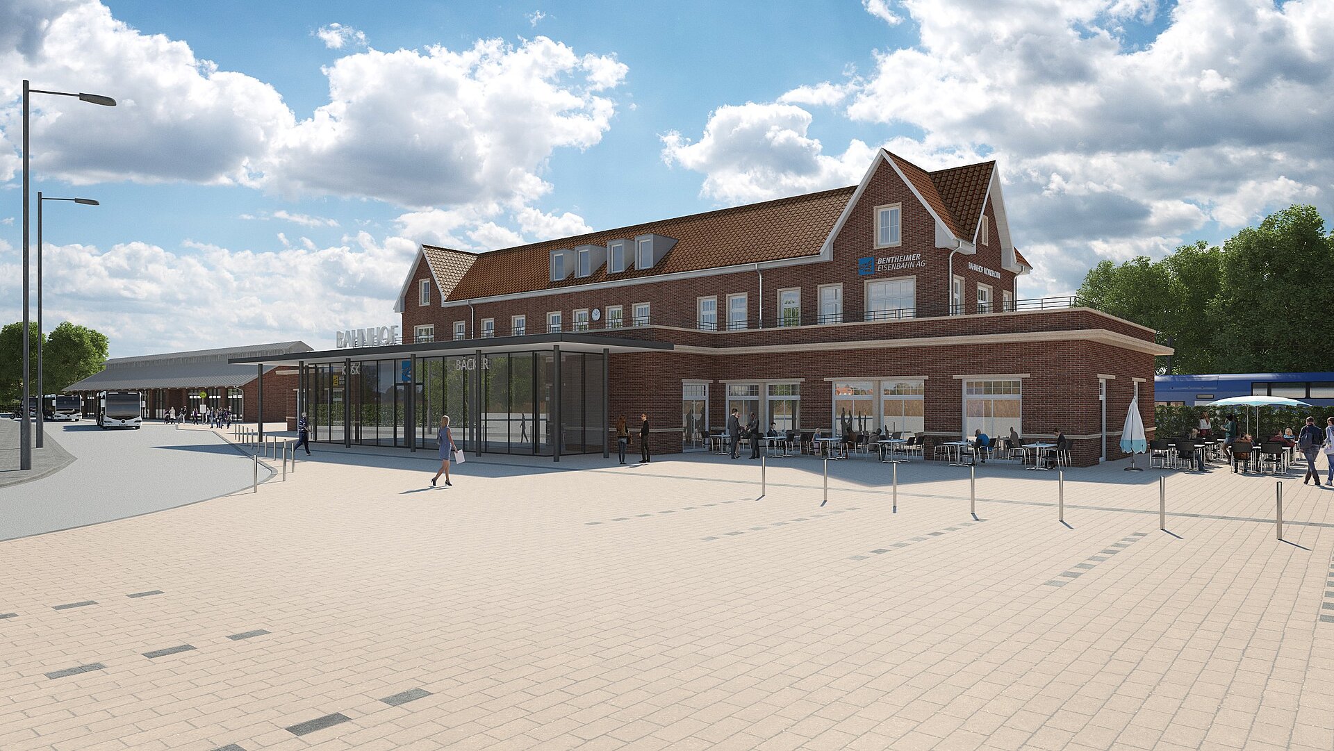 So wird das künftige Nordhorner Bahnhofsgebäude aussehen; Foto: Potgeter/BE
