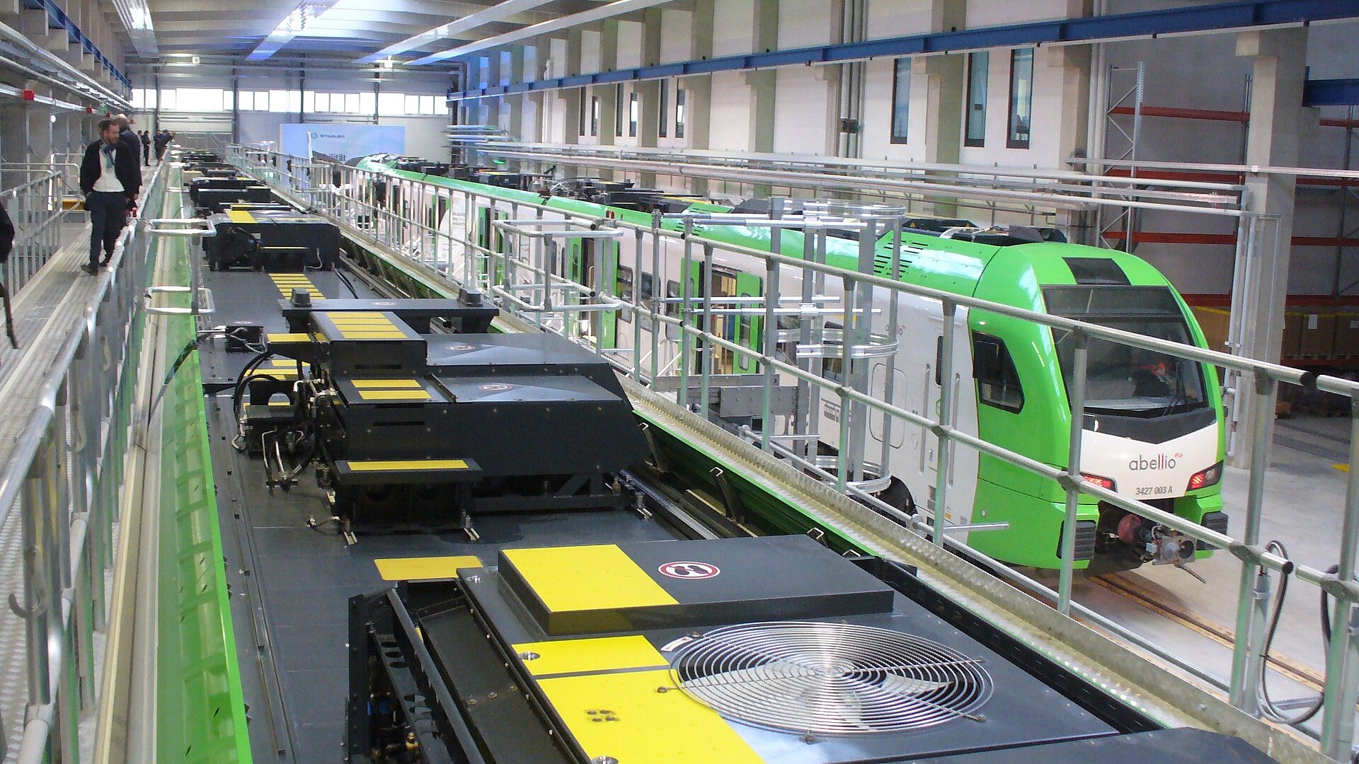 Wo früher Steinkohle gefördert wurde, entstand auf insgesamt 100.000 m² Fläche die Instandhaltungsanlage von Stadler. Innerhalb der vergangenen 18 Monate wurden rund 4000 m Schienen sowie 2700 m Oberleitung verlegt. Zu der 31.000 m² Fläche umfassenden Werkstatt gehören die Anlage für die Innen- und Außenreinigung der Züge, eine Unterflurradsatzdrehbank sowie das 7100 m² Fläche umfassende Werkstattgebäude mit Lager und Büroarbeitsplätzen. Sechs Gleise bietet das Werkstattgelände, auf dem pro Tag bis zu sieben Fahrzeuge das geplante Service-Programm durchlaufen können. Neben der Reinigung und der präventiven Instandhaltung führt Stadler alle Maßnahmen der ergänzenden korrektiven Instandhaltung sowie Unfall- und Vandalismus-Reparaturen und Revisionen durch. In der Halle können zwei Züge parallel behandelt werden; ein Gleis ist aufgeständert und mit Dacharbeitsbühne versehen. Mit der in einem weiteren Gebäude untergebrachten Unterflurdrehbank können Radsätze sowohl im aus- als auch im eingebauten Zustand direkt am Fahrzeug profiliert werden.