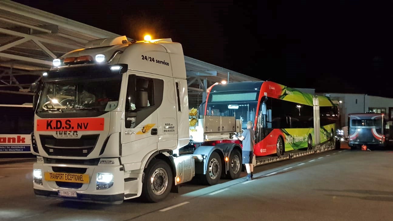 Ankunft des ersten E-Gelenkbusses aus der zweiten Bestellung der Stadtwerke; Foto: Stadtwerke Osnabrück/Patrick Bartels